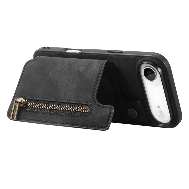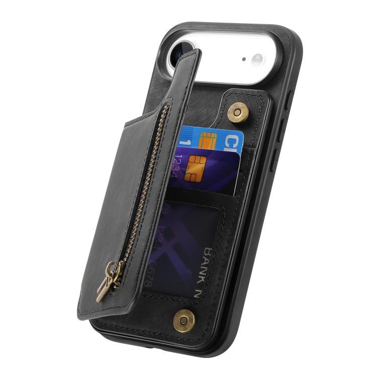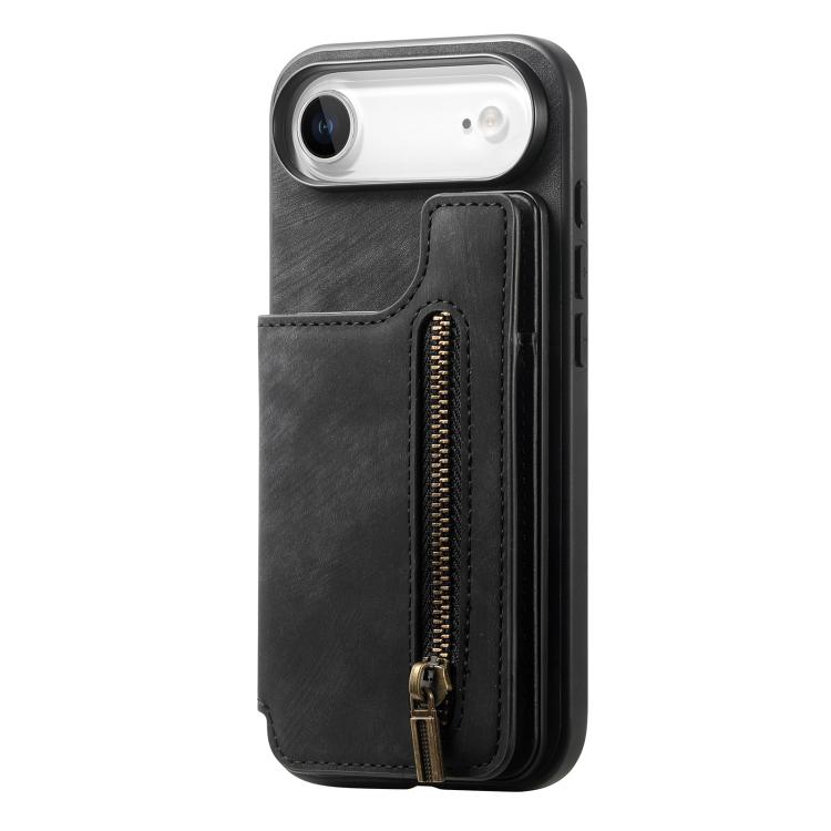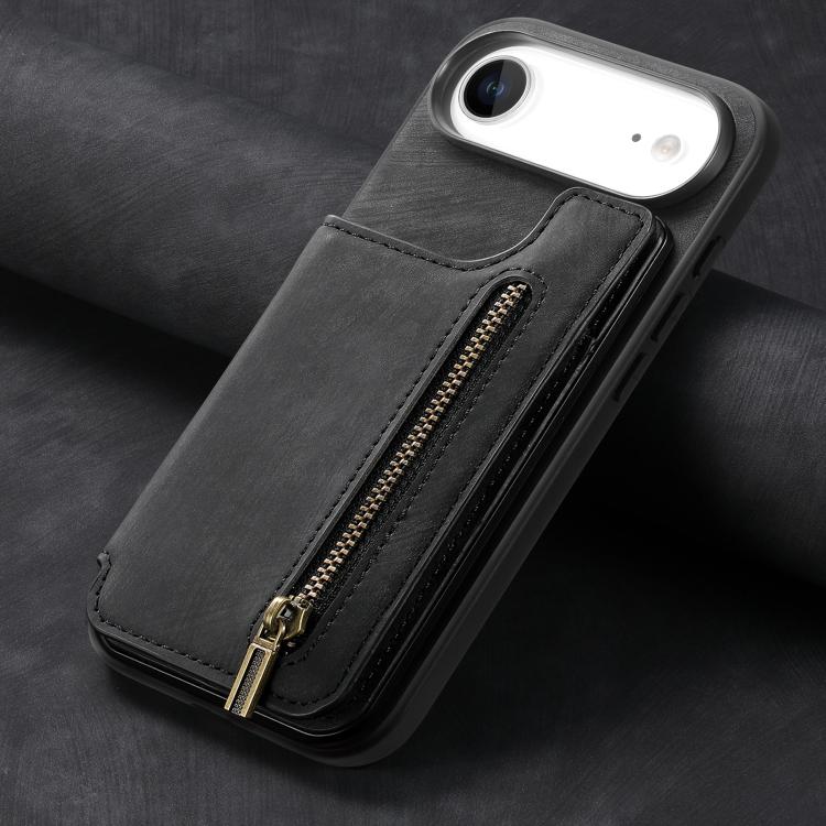 Funda de cuero retro con cremallera para iPhone Air (negro)
