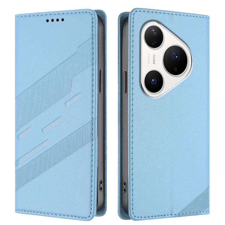 Funda de cuero retro con relieve para Huawei Pura 80 Pro (azul claro)