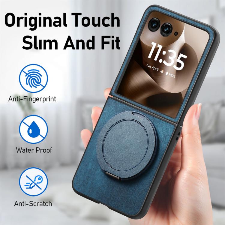 Funda de cuero retro con soporte giratorio para Motorola Moto Razr 50 Ultra (azul)