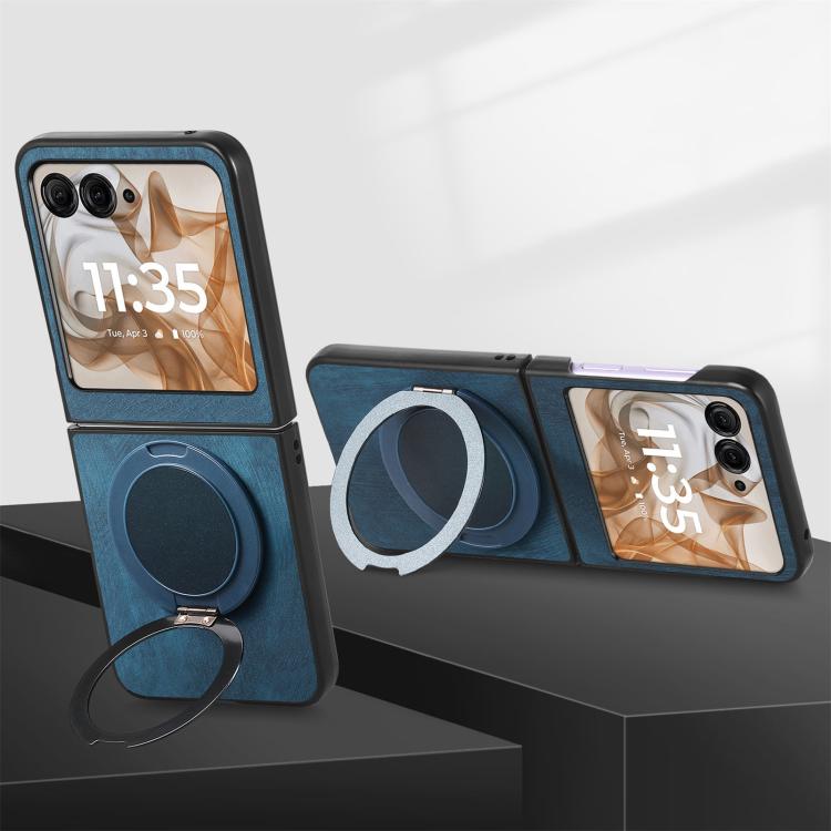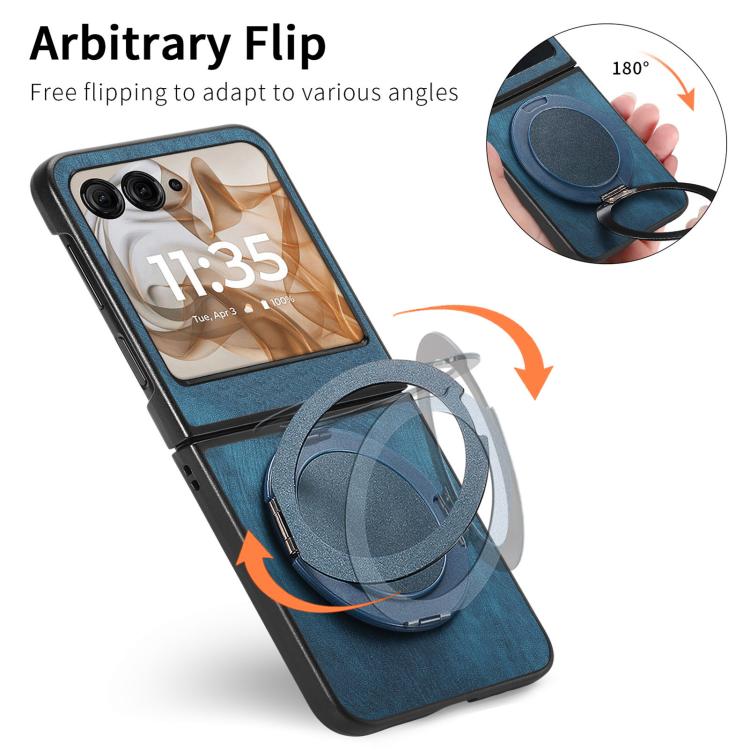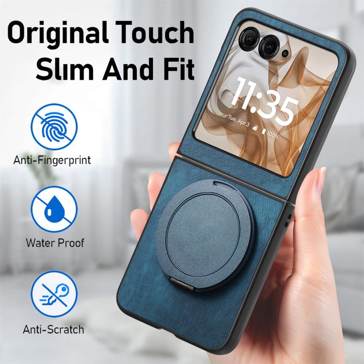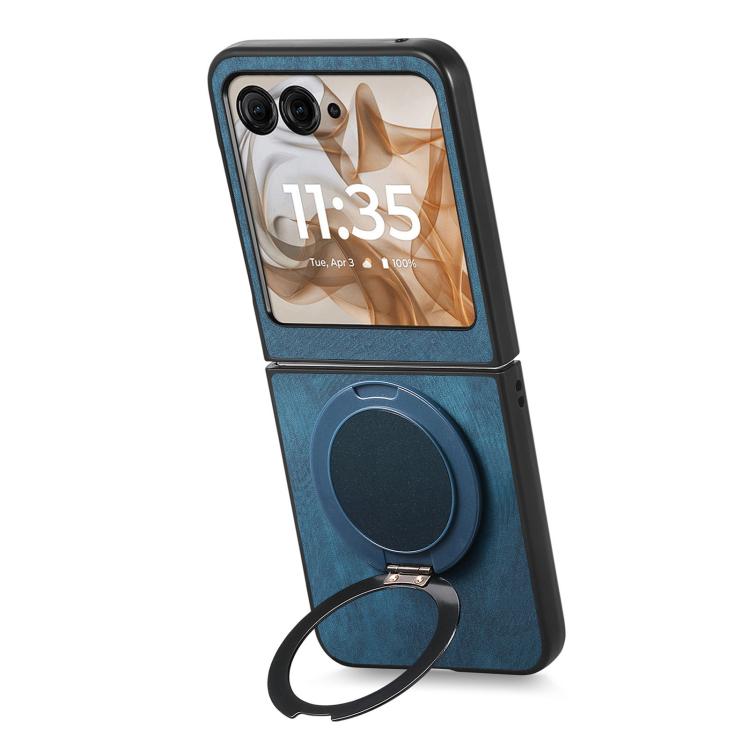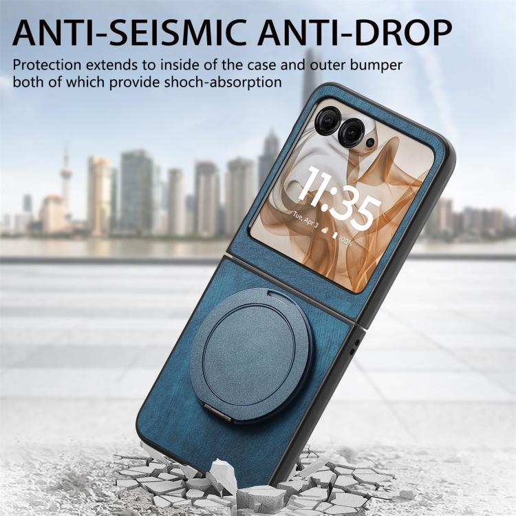 Funda de cuero retro con soporte giratorio para Motorola Moto Razr 60 (azul)
