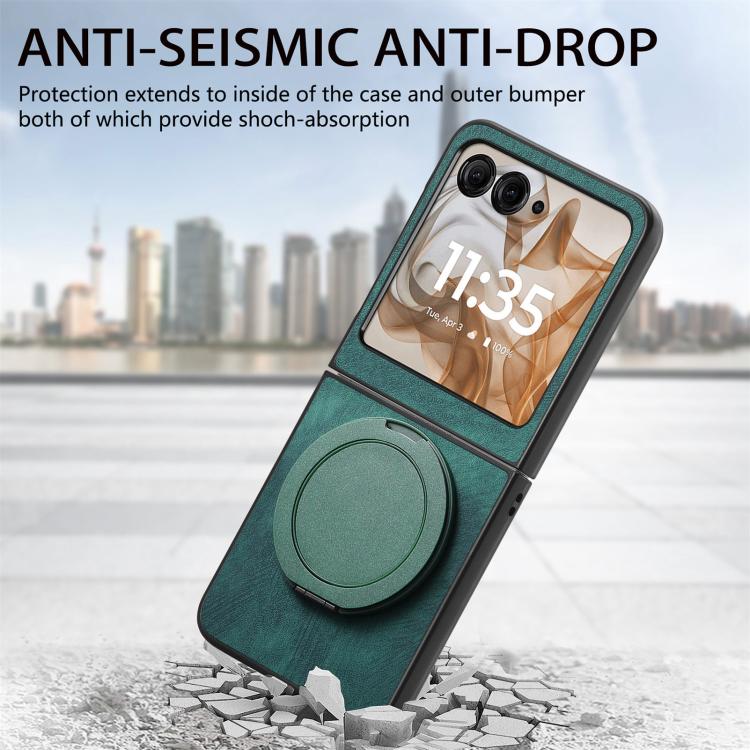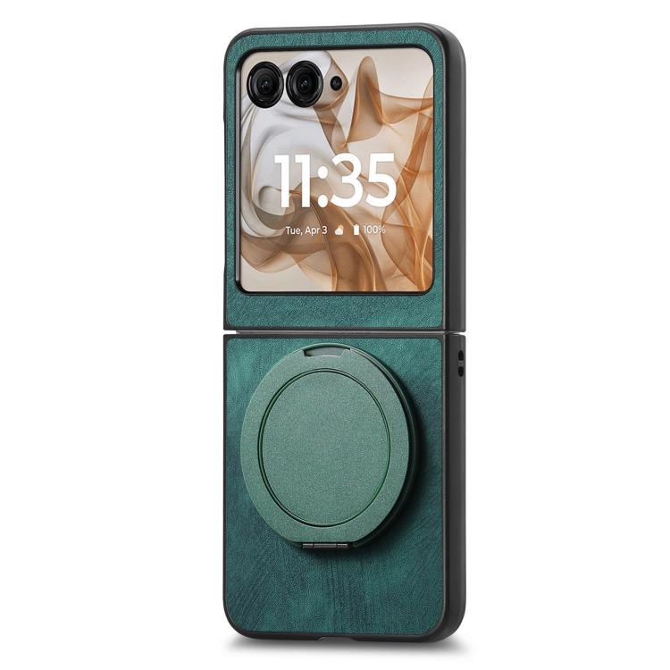 Funda de cuero retro con soporte giratorio redondo para Motorola Moto Razr 50 (verde)