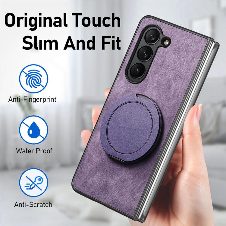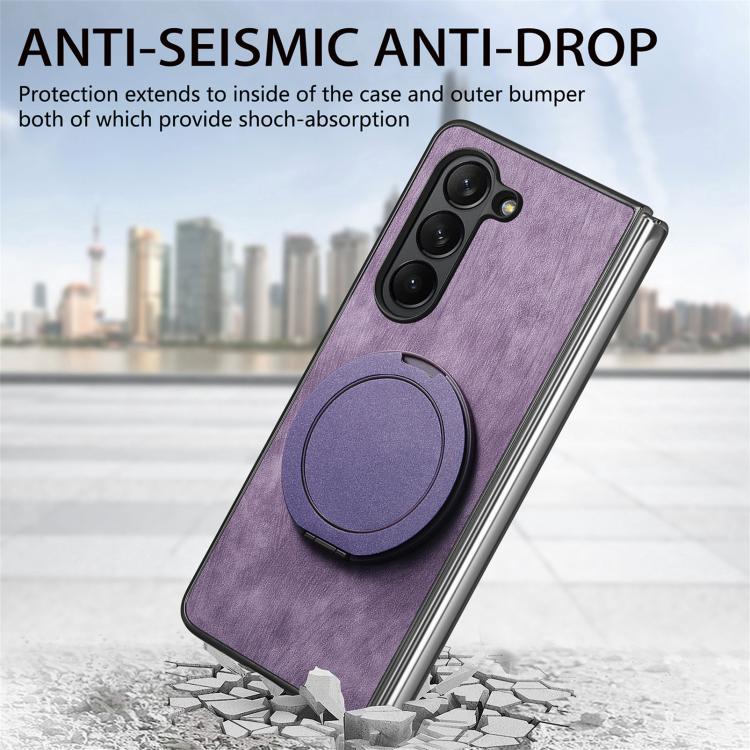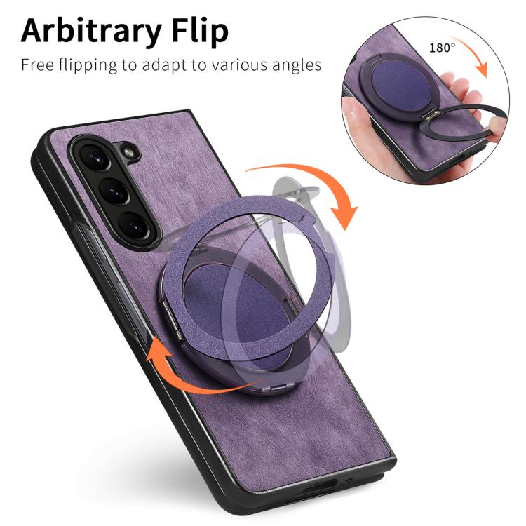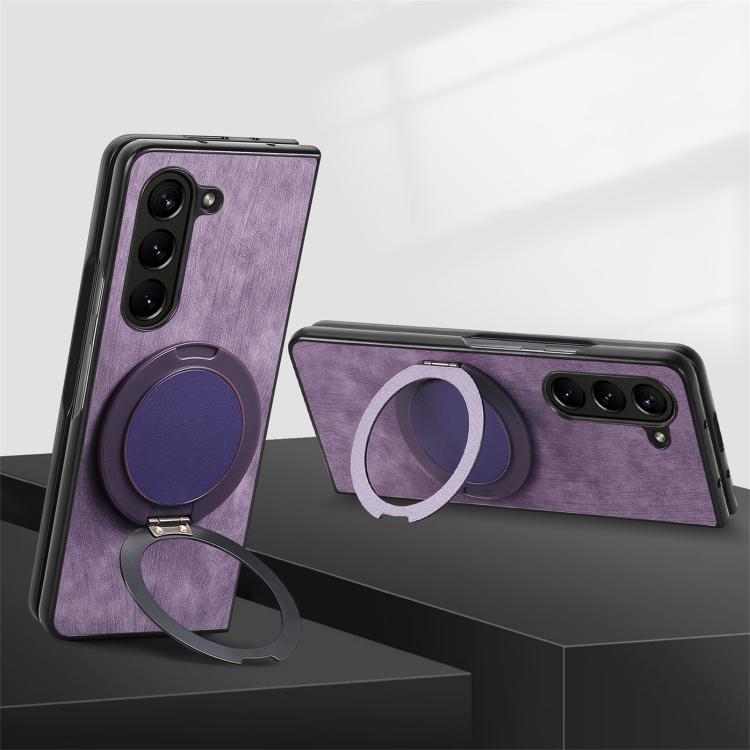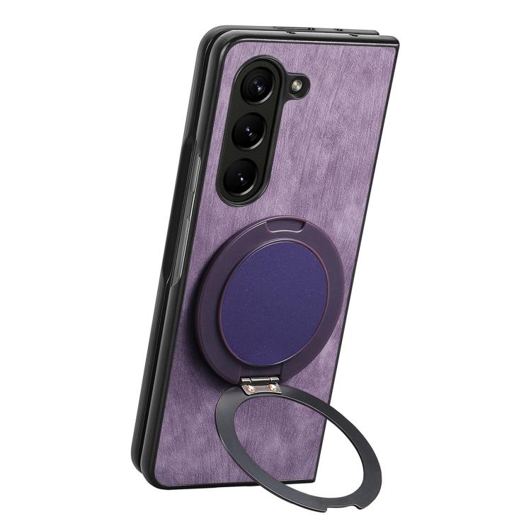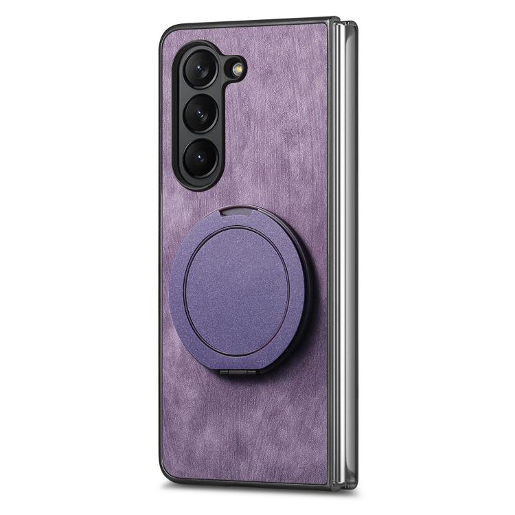 Funda de cuero retro con soporte giratorio redondo para Samsung Galaxy Z Fold4 (morado)