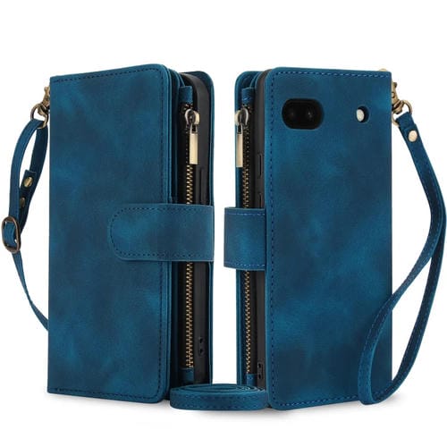 Funda de Cuero Rfid con Cremallera para Google Pixel 6 Dream con 9 Tarjetas y Cordón (Azul)