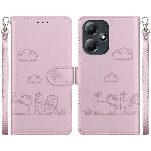 Funda de Cuero Rfid para Infinix Hot 30 Play con Diseño de Gatos (Oro Rosa)