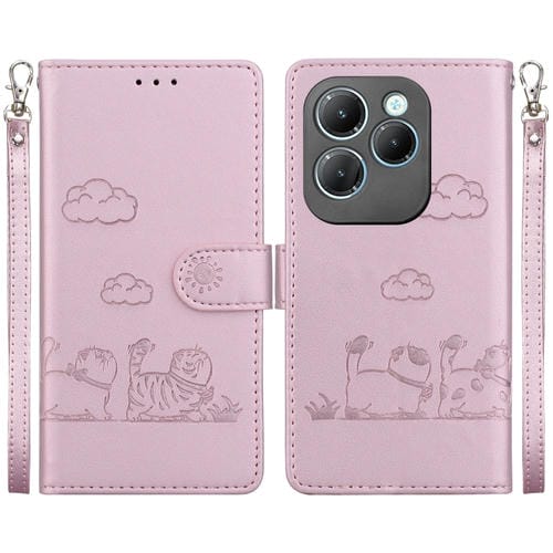 Funda de Cuero RFID para Infinix Hot 40/40 Pro con Diseño de Gatos (Oro Rosa)