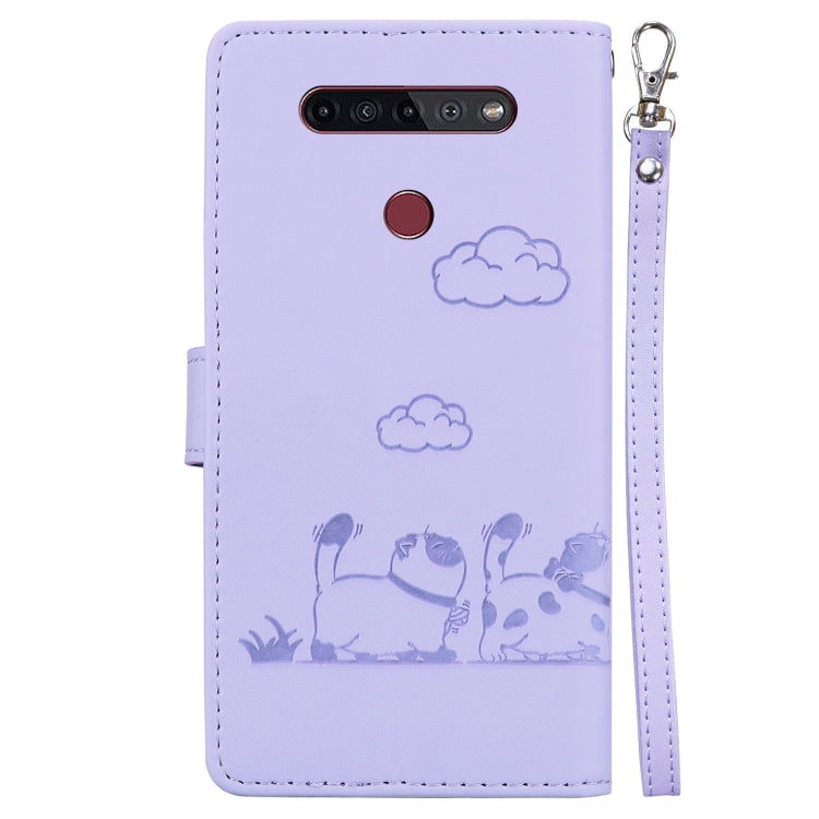 Funda de Cuero RFID para LG K41S/K51S con Diseño de Gatos (Morado)