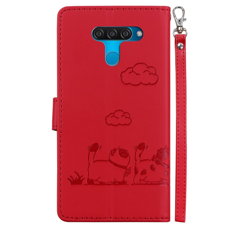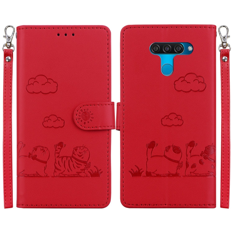 Funda de Cuero Rfid para LG K50/Q60 con Diseño de Gatos (Roja)