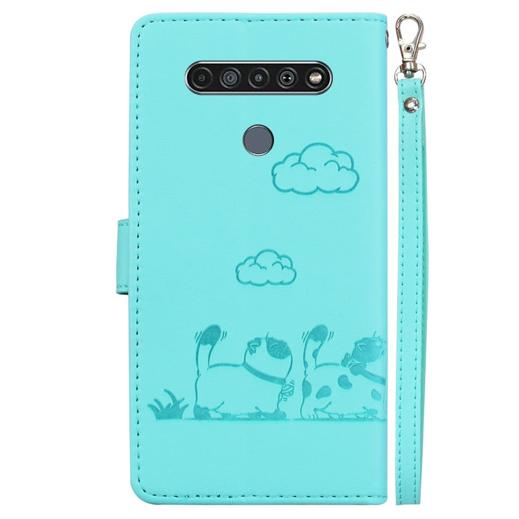 Funda de Cuero Rfid para LG K61 con Diseño de Gatos (Verde)