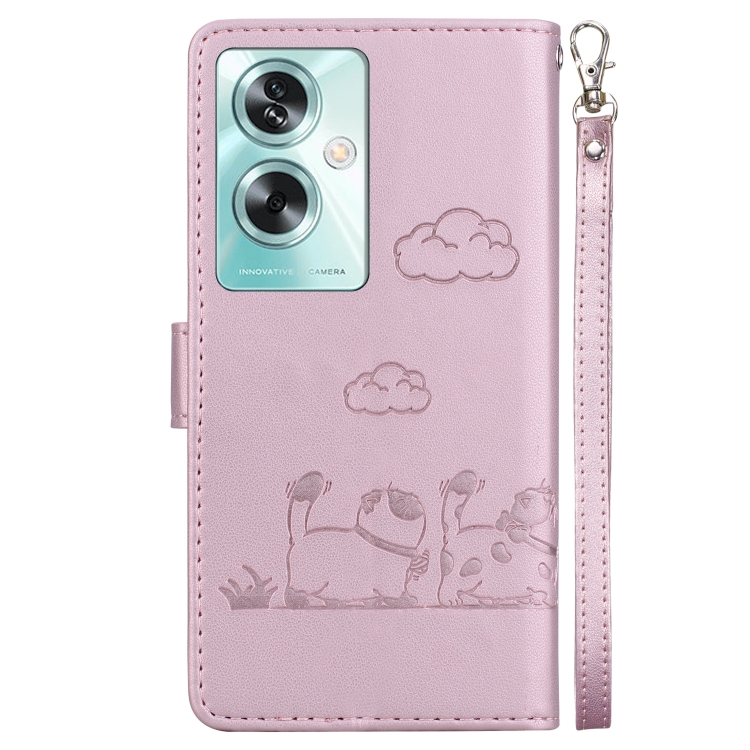 Funda de Cuero Rfid con Diseño de Gatos para Oppo A79 5G Global (Oro Rosa)