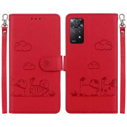 Funda de Cuero Rfid con Diseño de Gatos para Redmi Note 12 Pro 4G (Roja)