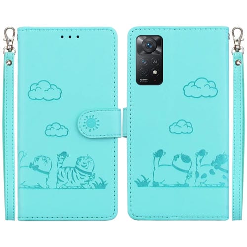 Funda de Cuero Rfid con Diseño de Gatos para Redmi Note 12 Pro 4G (Verde)