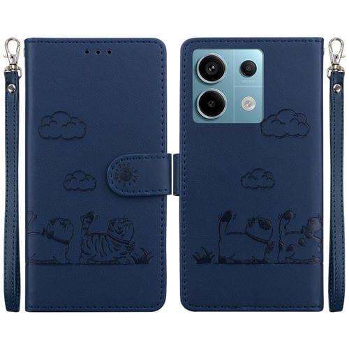 Funda de Cuero Rfid con Diseño de Gatos para Redmi Note 13 Pro 5G (Azul)