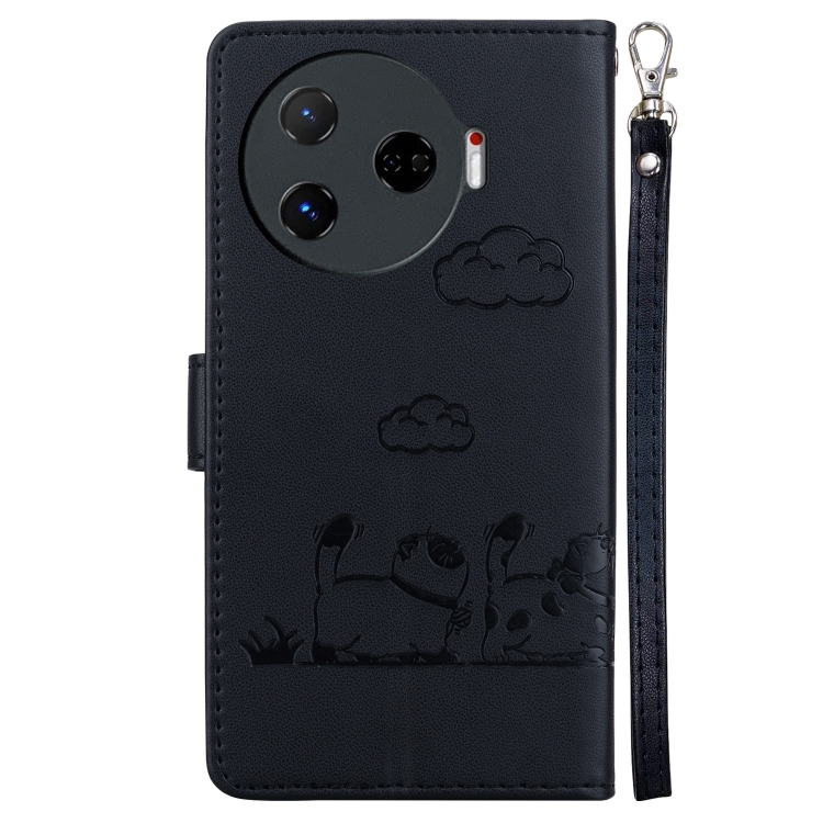 Funda de Cuero Rfid para Tecno Camon 30 Pro 5G con Diseño de Gatos (Negra)