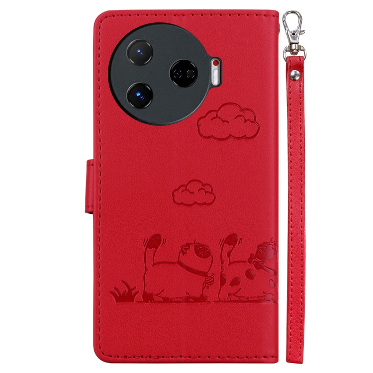 Funda de Cuero Rfid para Tecno Camon 30 Pro 5G con Diseño de Gatos (Rojo)
