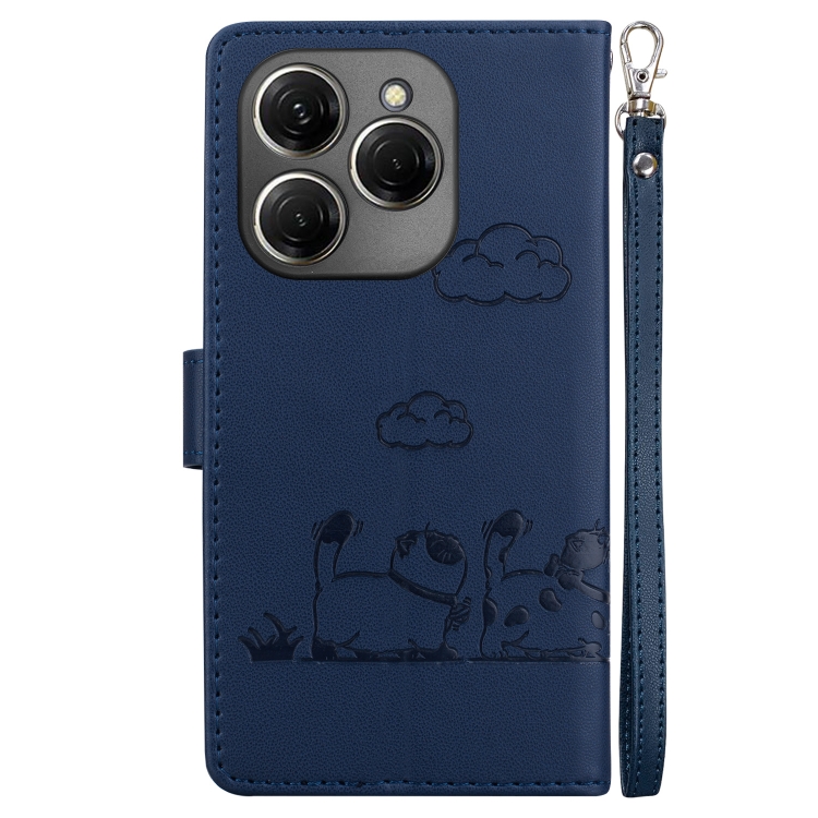 Funda de Cuero Rfid para Tecno Spark 20 Pro con Diseño de Gatos (Azul)