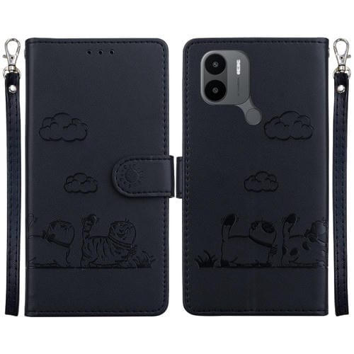 Funda de Cuero Rfid con Diseño de Gatos para Xiaomi Poco C50 (Negra)