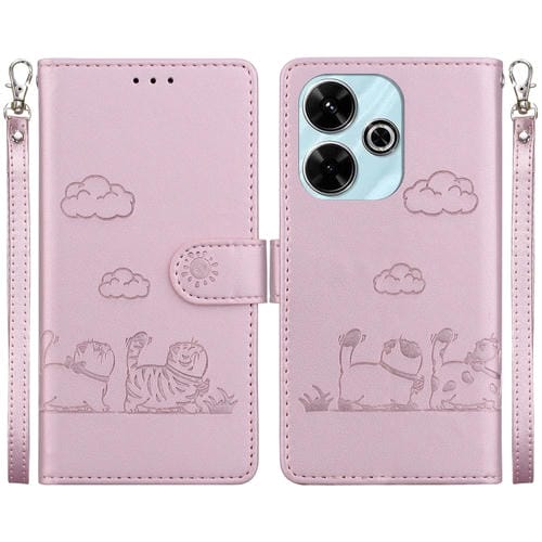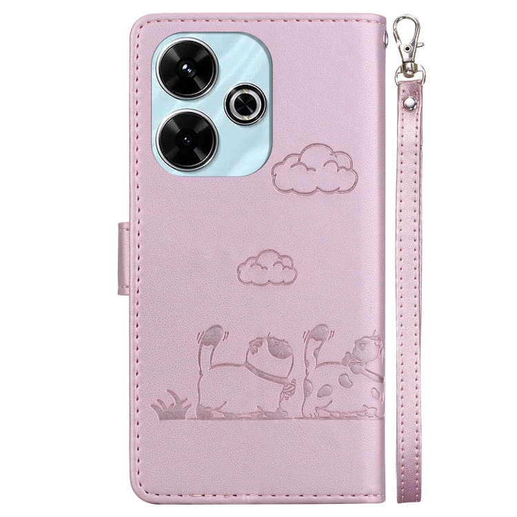 Funda de Cuero Rfid con Diseño de Gatos para Xiaomi Poco M6 4G (Oro Rosa)