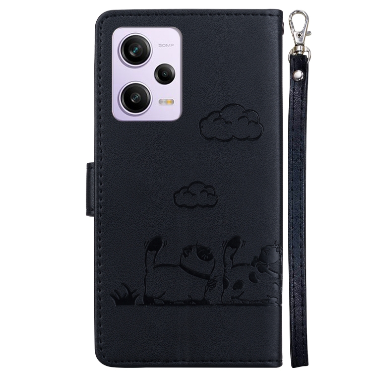 Funda de Cuero Rfid con Diseño de Gatos para Xiaomi Poco X5 Pro (Negra)