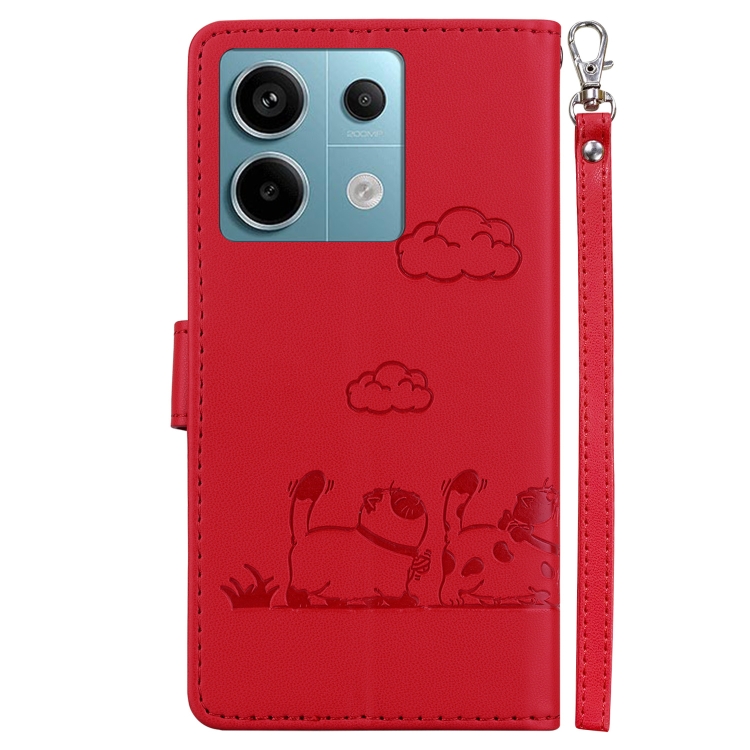 Funda de Cuero con Diseño de Gatos Lindos Rfid para Xiaomi Poco X6 5G (Rojo)