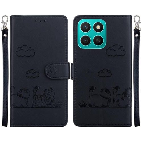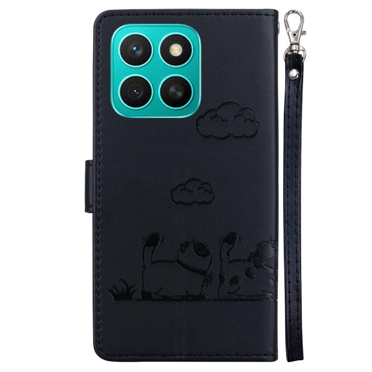 Funda de Cuero Rfid para Honor X8C 4G con Diseño de Gatos (Negra)