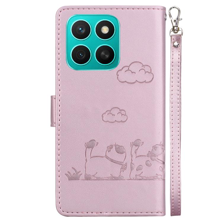 Funda Cuero Rfid Honor X8C 4G Diseño Gatos (Oro Rosa)