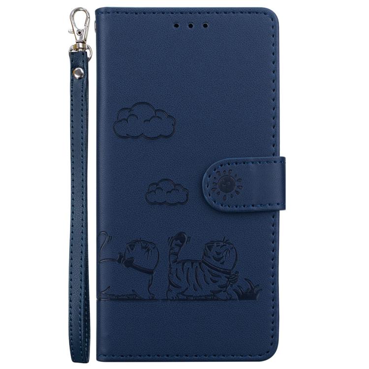 Funda de cuero RFID con diseño de gatos para Infinix Hot 50 Pro 4G (azul)