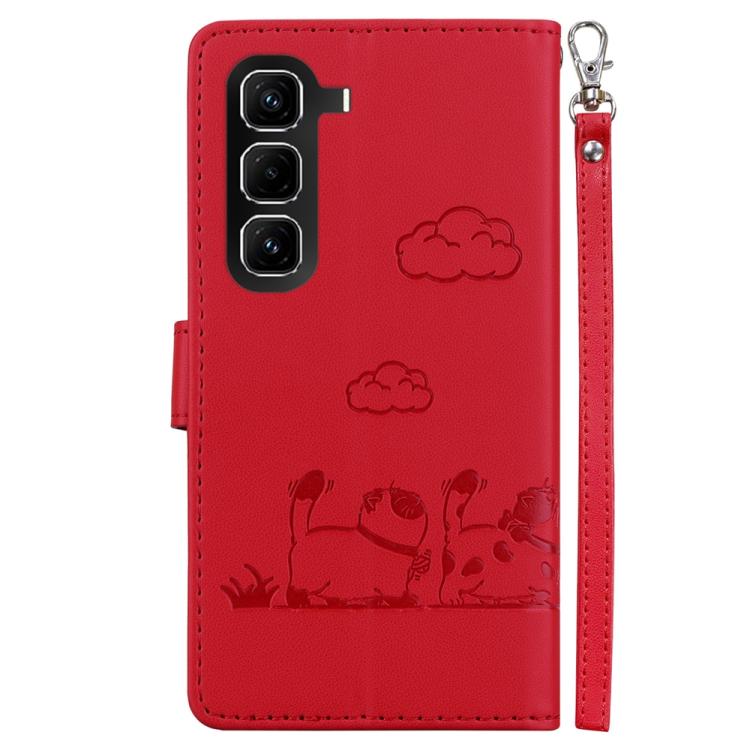 Funda de cuero RFID con diseño de gatos para Infinix Hot 50 Pro 4G (roja)