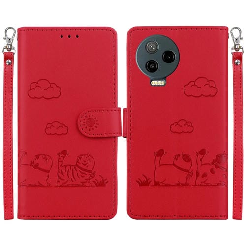 Funda de Cuero RFID para Infinix Note 12 Pro 4G y Note 12 con Diseño de Gatos (Roja)