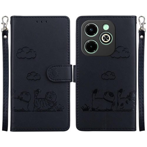 Funda de Cuero Rfid para Infinix Smart 8/8 HD Hot 40I con Diseño de Gatos (Negra)