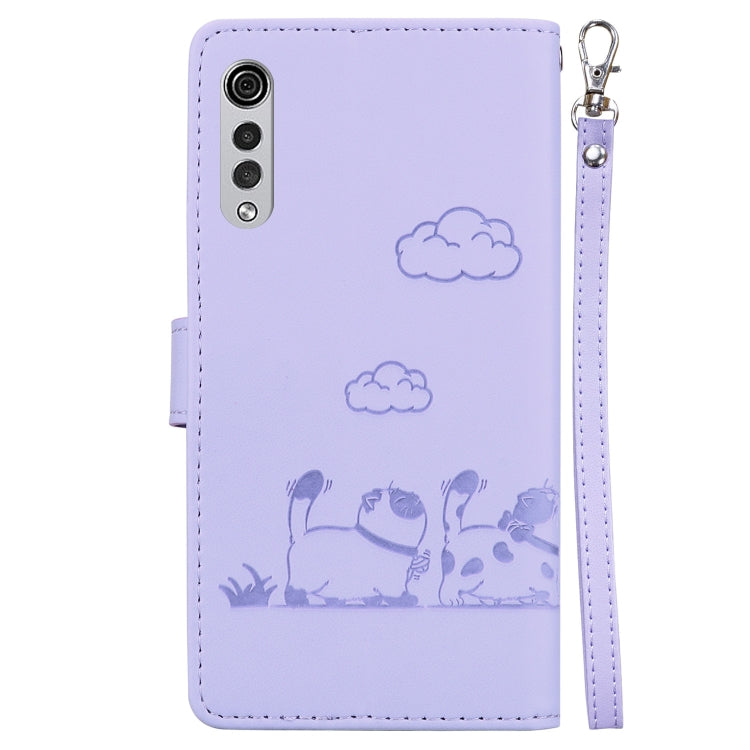 Funda de Cuero Rfid con Diseño de Gatos para LG Velvet/G9 4G/G9 5G (Morado)