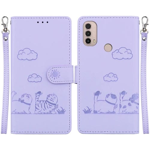 Funda de Cuero Rfid para Motorola Moto E40/E30/E20 con Diseño de Gatos (Morado)