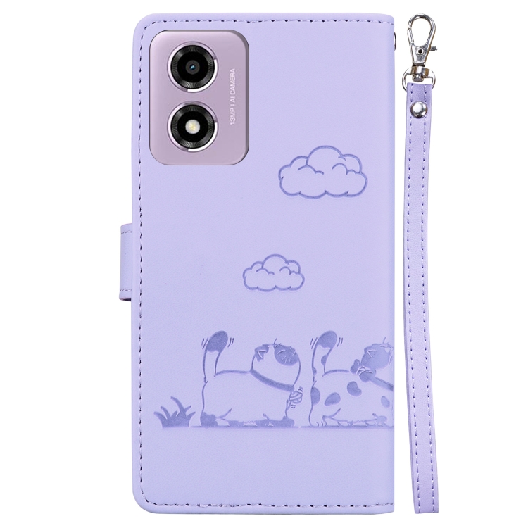 Funda de Cuero Rfid con Diseño de Gatos para Motorola Moto G04S/E14 (Morado)