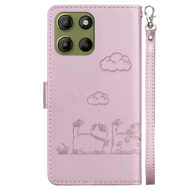 Funda de Cuero Rfid para Motorola Moto G15 con Diseño de Gatos (Oro Rosa)