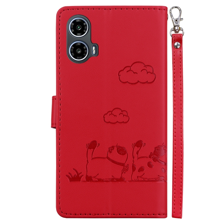 Funda de Cuero Rfid para Motorola Moto G34 5G con Diseño de Gatos (Rojo)