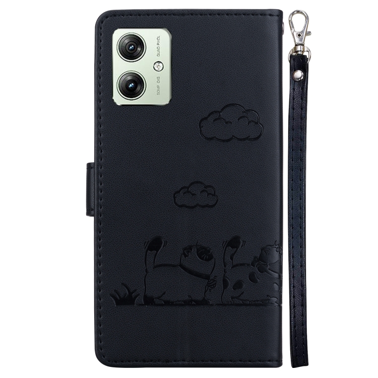 Funda de Cuero Rfid para Motorola Moto G54 con Diseño de Gatos (Negra)