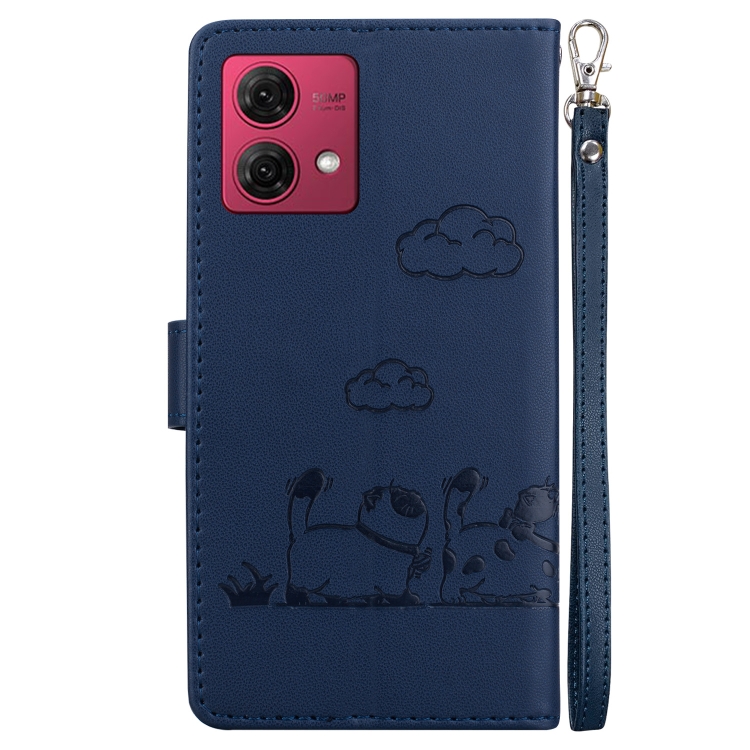 Funda de Cuero Rfid para Motorola Moto G84 con Diseño de Gatos (Azul)