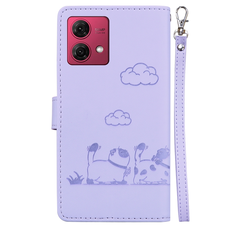 Funda de Cuero Rfid para Motorola Moto G84 con Diseño de Gatos (Morado)