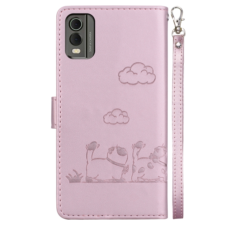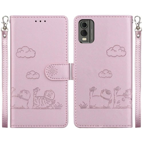 Funda de Cuero Rfid para Nokia C32 con Diseño de Gatos (Oro Rosa)