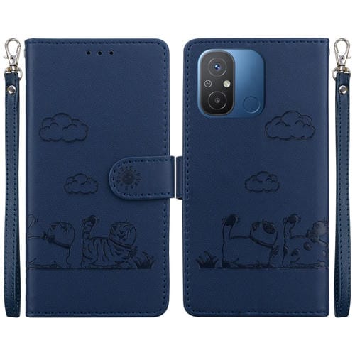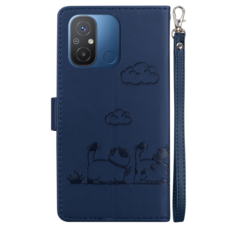 Funda de Cuero Rfid con Diseño de Gatos para Redmi 12C/11A (Azul)