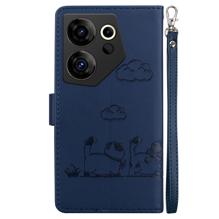Funda de Cuero Rfid para Tecno Camon 20 Premier 5G con Diseño de Gatos (Azul)