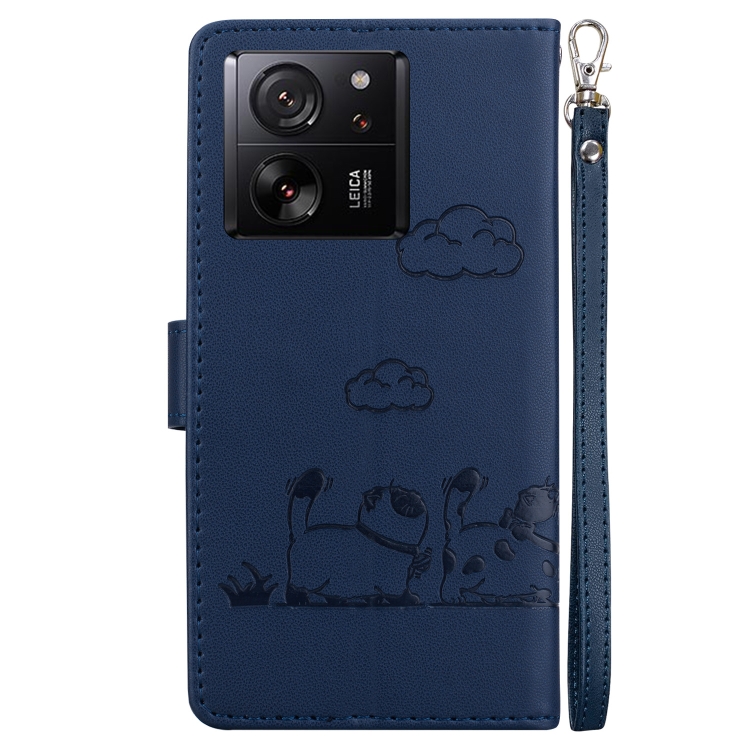 Funda de Cuero Rfid con Diseño de Gatos para Xiaomi 13T/13T Pro (Azul)
