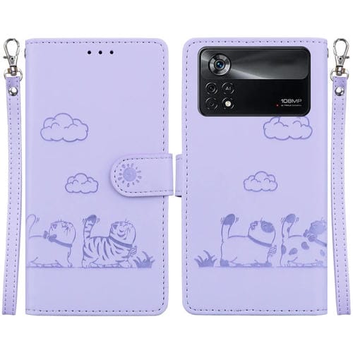 Funda de Cuero Rfid con Diseño de Gatos para Xiaomi Poco X4 Pro 5G (Morada)