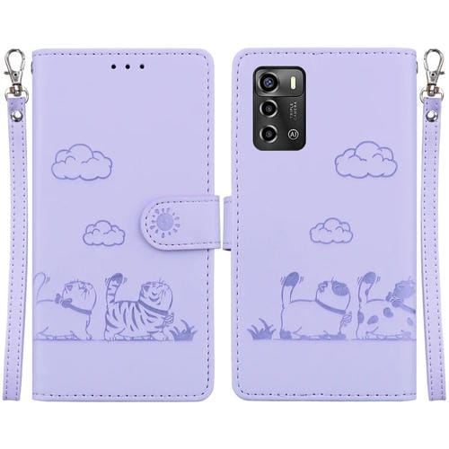 Funda de Cuero Rfid para ZTE Blade A72/V40 Vita con Diseño de Gatos (Morado)