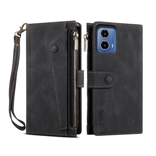 Funda de Cuero Rfid para Motorola Moto G35 Eseble con Diseño Retro Esmerilado (Negro)
