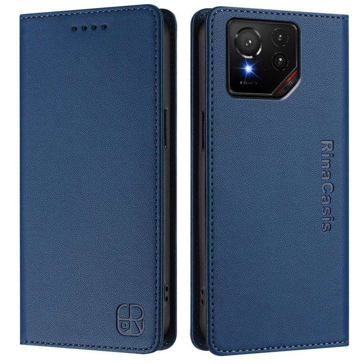 Funda de Cuero Rfid con Doble Pliegue y Succión Magnética para Asus Rog Phone 9/9 Pro Rc01 (Azul Oscuro)