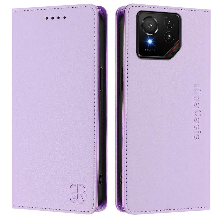Funda de Cuero Rfid para Asus Rog Phone 9/9 Pro Rc01 con Doble Pliegue y Succión Magnética (Morado Claro)