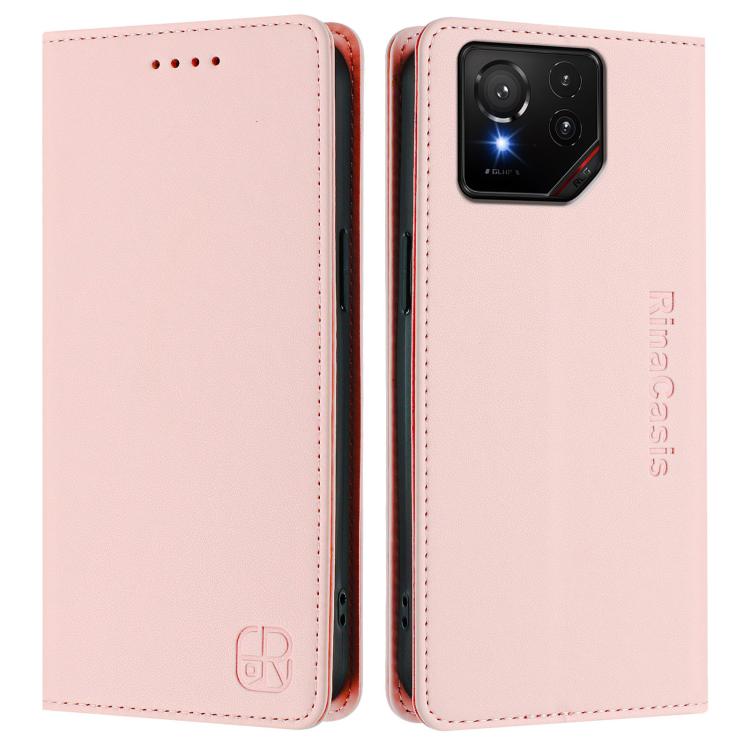 Funda de Cuero Rfid para Asus Rog Phone 9/9 Pro Rc01 con Doble Pliegue y Succión Magnética (Rosa)