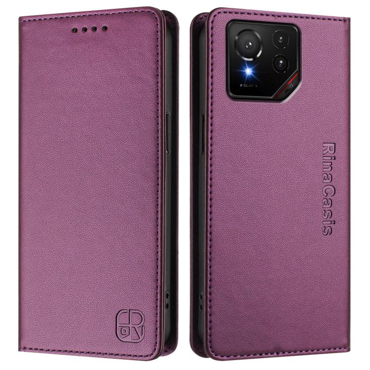Funda de Cuero Rfid con Doble Pliegue y Succión Magnética para Asus Rog Phone 9/9 Pro Rc01 (Violeta)