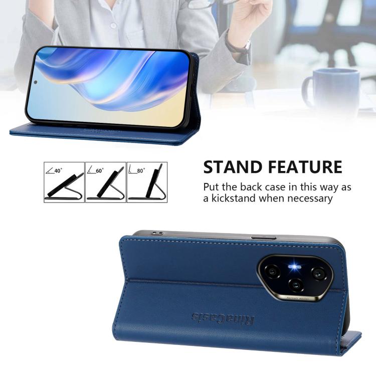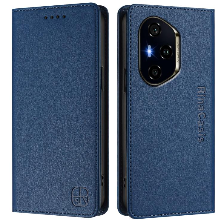 Funda de Cuero Rfid para Honor 400 Rc01 con Doble Pliegue y Succión Magnética (Azul Oscuro)
