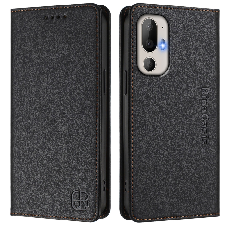 Funda de Cuero Rfid para HTC U24 Pro Rc01 con Doble Pliegue y Succión Magnética (Negro)